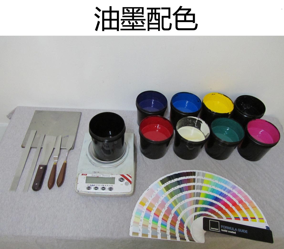 在調配專色油墨之前要計算用量,如果印刷企業擁有專色管理軟件,可以用分光密度計測試印刷色塊的密度,然后把印刷色塊的密度、面積和總印量等信息輸入到電腦里,通過專色管理軟件把重量計算出來。如果印刷企業沒有專色管理軟件,首先,可以先用其它顏色印刷一下專色色塊,連續印刷幾十個;其次,上電子秤稱重,用印刷好的重量減去空白材料的重量,再除以印刷個數,計算出單個標簽用墨的重量;最后,用單個標簽用墨的重量乘以總的印刷數量得出總的油墨重量。這里需要注意的是,上述兩種方式計算出來的油墨重量都有一定的誤差,為了保證印刷質量避免多次配墨造成的色差,建議在計算出的油墨重量基礎上額外加10%~15%。此外,在第一次生產結束后可以比較準確的計算出油墨的重量,給下次生產提供基礎數據,幾次統計下來取平均值以后再計算就會變得相對比較準確。